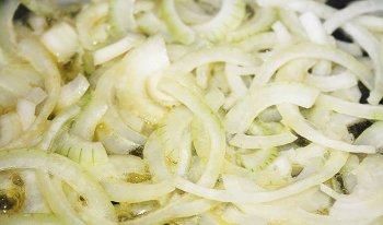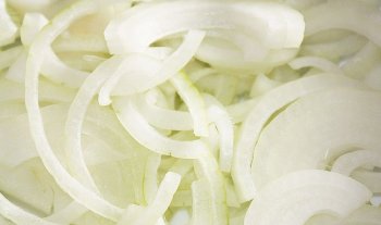 Начнем с соуса: лук режем кольцами или полукольцами.