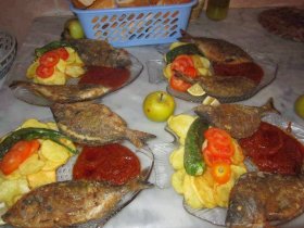 А раз уж повседневный спрос диктует наибольшие предпочтения, то среди них сразу выделяются традиционные походные - рыба запеченая на камне, в глине, золе, бумаге, фольге, и так далее. Ну, мы еще и решили дополнить картину такими экзотическими рецептами как рыба с васильками, медуницей, в соусе из хрена, и так далее, а также напомнить классику жареной рыбы и карасей в сметане для тех, кто слышал, но еще не пробовал.